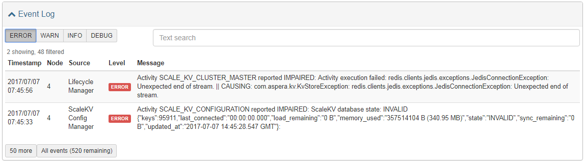 - ERROR shows error messages and which node reported them.