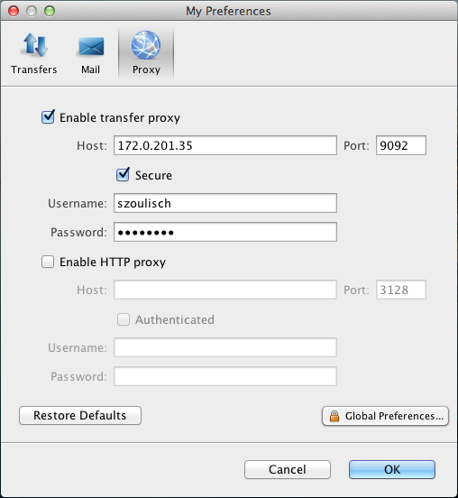 If you have admin privileges, you can enable transfer proxies for all users by setting global preferences. If you are a non-admin user, you can override global transfer-proxy settings for your own account, including enabling or disabling the feature.