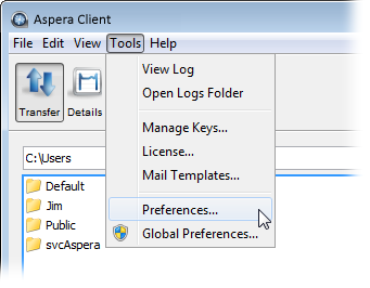 Configuring transfer notifications requires Administrator permissions. Log into your computer with your Administrator account and launch the application ( Start menu > All Programs > Aspera > Client > Client ).