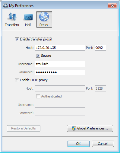 If you are an admin, you can access the global proxy dialog by clicking the Global Preferences button.