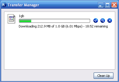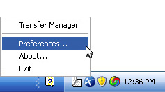 During a transfer session, you may manage the transfer in the Transfer Manager. In Windows, the Transfer Manager is located at the lower-right corner of the task bar in the system tray. Double-click on the icon to open the Transfer Manager. In the Transfer Manager you can see all transfer sessions.