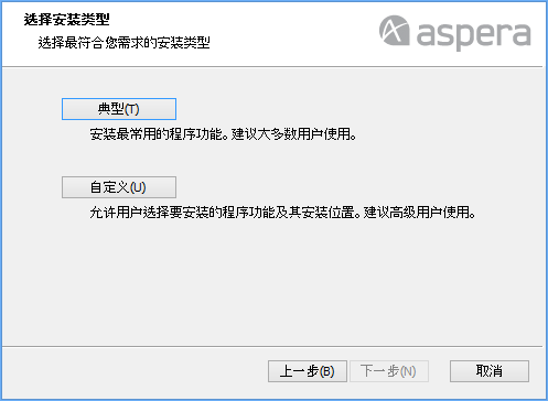 您可以直接从 http://beta-www.asperasoft.com/download_connect/ 下载 Aspera Connect MSI。下载后,在您的计算机上运行安装程序。 您需要接受条款和条件,以及确认 Aspera Connect 的安装位置。 通过单击 典型按钮,可在标准位置安装应用程序。