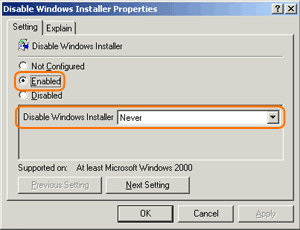 | Windows 2003 | The system administrator has set policies to prevent this installation. |