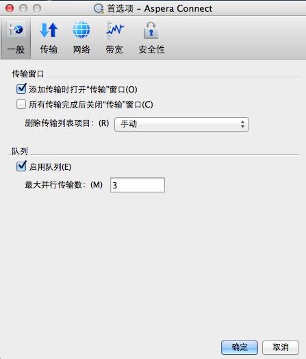 Aspera Connect 的一般应用程序行为可通过一般选项进行配置。