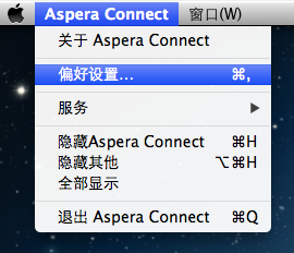 启动 Aspera Connect( 或者 ),打开首选项()。