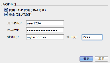 要配置 fasp 代理,请启用以下复选框: