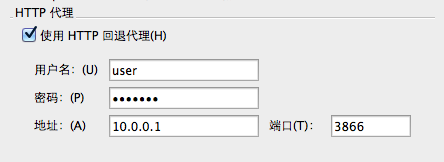 选中复选框后,输入您的代理服务器的用户名、密码、地址和端口号。