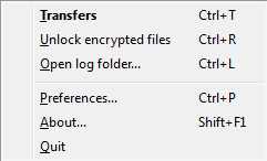 Note that you can also unlock encrypted files from the Connect application menu (select the Unlock encrypted files option shown below).