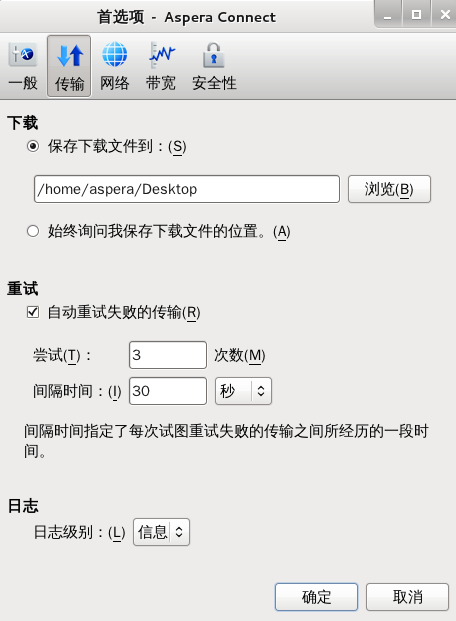 通过“首选项”更改 Aspera Connect 的默认设置。
