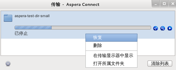 详细查看 Aspera Connect“传输管理器”。