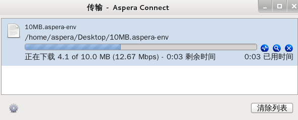 在内容受保护的文件下载到您的计算机时,Aspera Connect 传输窗口中的文件后缀将显示为 aspera-env。