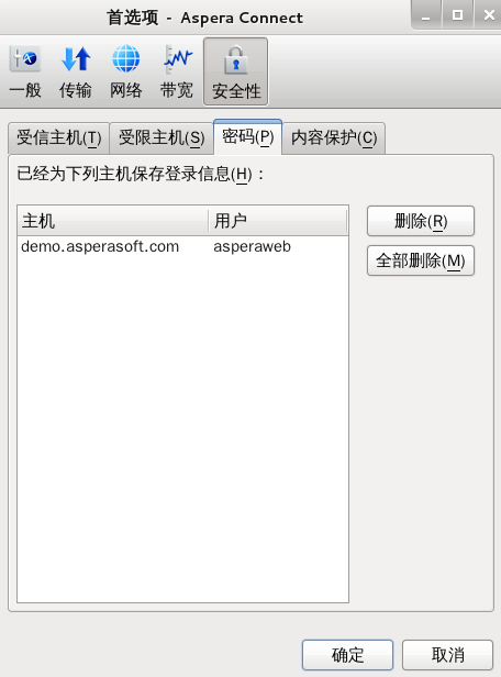 配置 Aspera Connect 软件的安全性首选项。