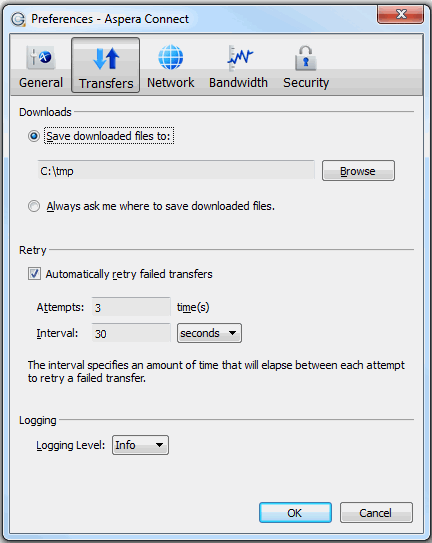 and open Preferences (System Tray > Right-click Aspera Connect > Preferences