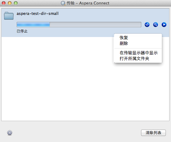 详细查看 Aspera Connect“传输管理器”。