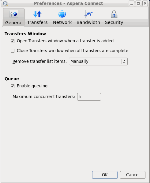 - Enable or disable transfer queuing via the checkbox (which allows a fixed number of concurrent transfers and places the rest in a queue) and identify the maximum number of concurrent transfers via the text box.