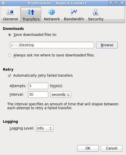Lastly, you may configure a logging level that can be used to control the logging output when troubleshooting a transfer issue.