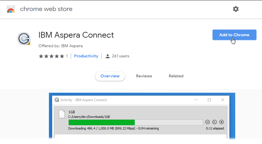 If successful, you'll see the message "IBM Aspera Connect has been added to Chrome".