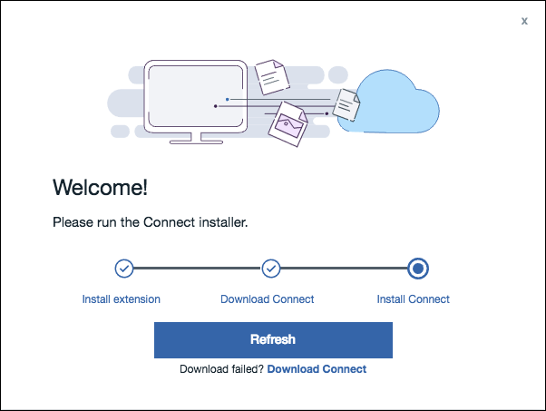 To install the Connect application, locate the installer file you just downloaded, open it, and follow the instructions to install the Connect application. Once the Connect application has been installed, return to the above screen and click Refresh to refresh the browser.