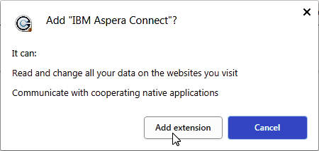 - Click Add to Chrome. The Add "IBM Aspera Connect"? popup appears.