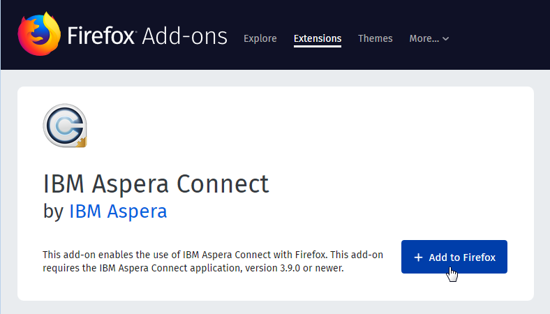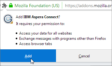 If successful, you'll see the message "IBM Aspera Connect has been added to Firefox".