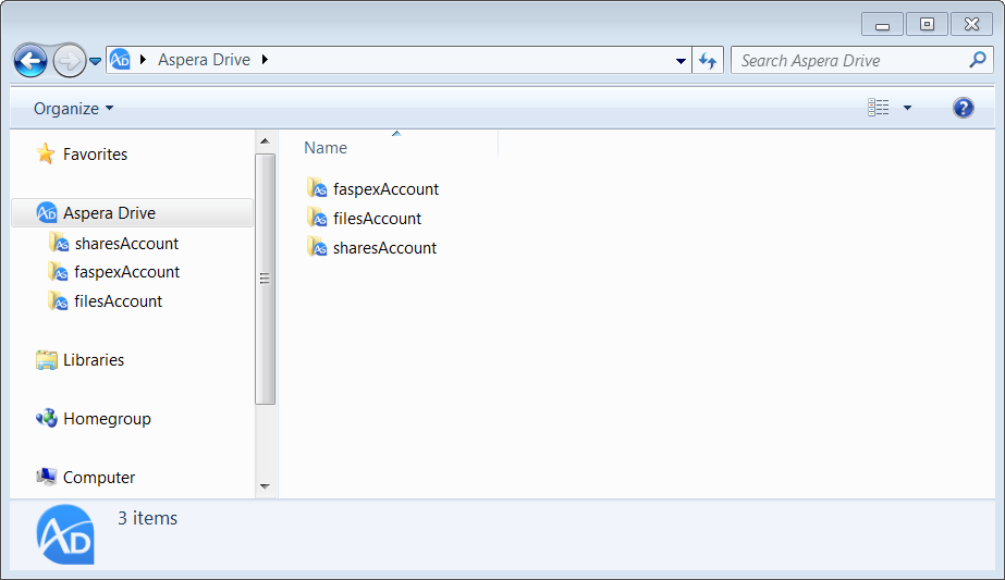In Windows Explorer, navigate to Aspera Drive. The folders under