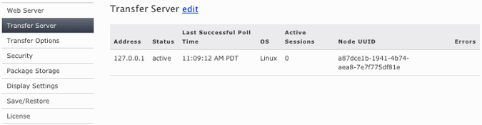 If you are planning to use a different machine as your transfer server, click the edit link, which takes you to a secondary transfer server configuration screen.