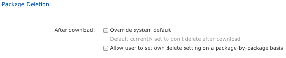 | Allow user to set own delete setting on a package-by-package basis | Provide the policy settings in the user's New Package screen. The user can determine the file package's expiration rule when preparing it. |