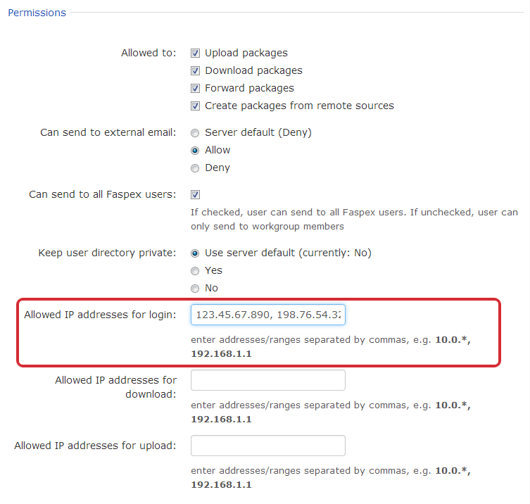 The following instructions disallow login attempts to IBM Aspera Faspex from unknown IP addresses for all