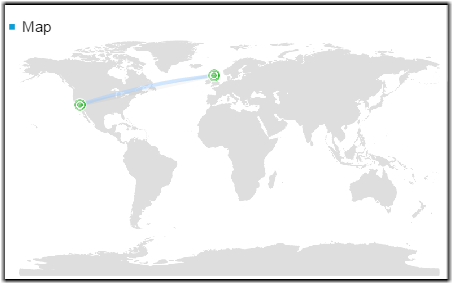 The configured nodes appear on the map on the Dashboard. Ongoing transfers between nodes are