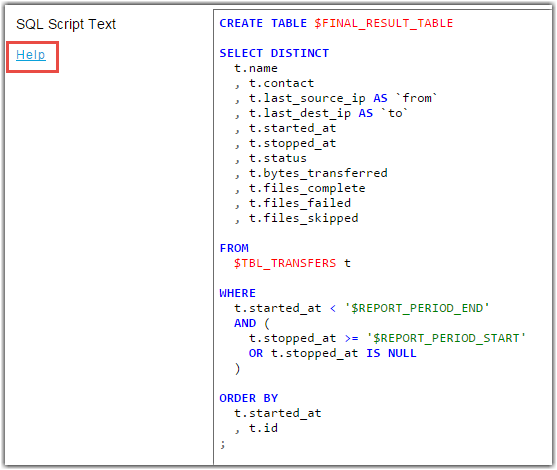 SQL Script Text section.