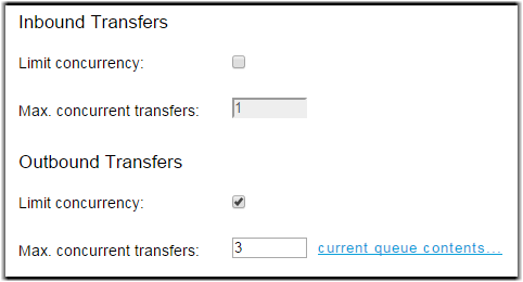 In the example below, queueing is disabled for inbound transfers. For outbound