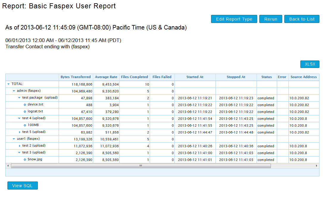 Faspex users. In our example, we will generate a report that displays transfer activity