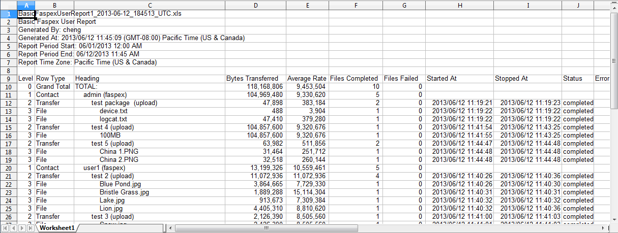Faspex users only. The example report, once generated, will display total