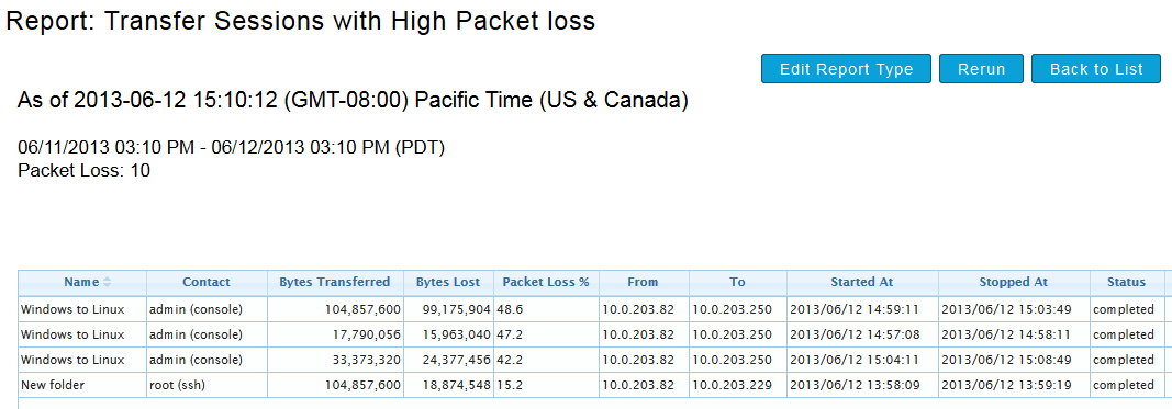 transfers with high packet loss. In our example, we will generate a report that displays