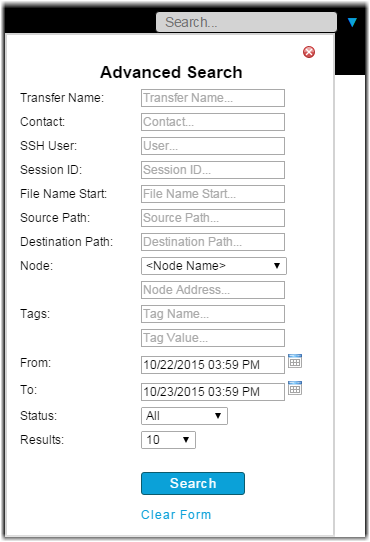 You can search for a transfer from any page in IBM Aspera Application Platform / Server On Demand (APOD / SOD) by using the search bar in the top right corner of the
