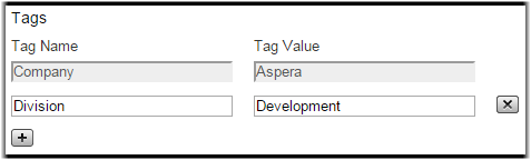 button to add a new tag. Enter the tag name and the tag value. Click the