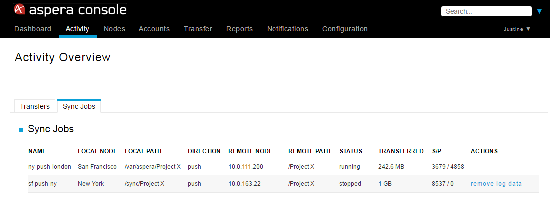 | Working with IBM Aspera Console / Monitoring Sync Jobs | |