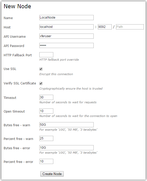 | API Password | The node API password associated with the transfer user on the node machine. |