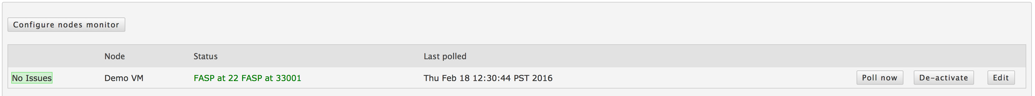 - Deactivates the monitor. The node monitor no longer polls for connectivity tests and