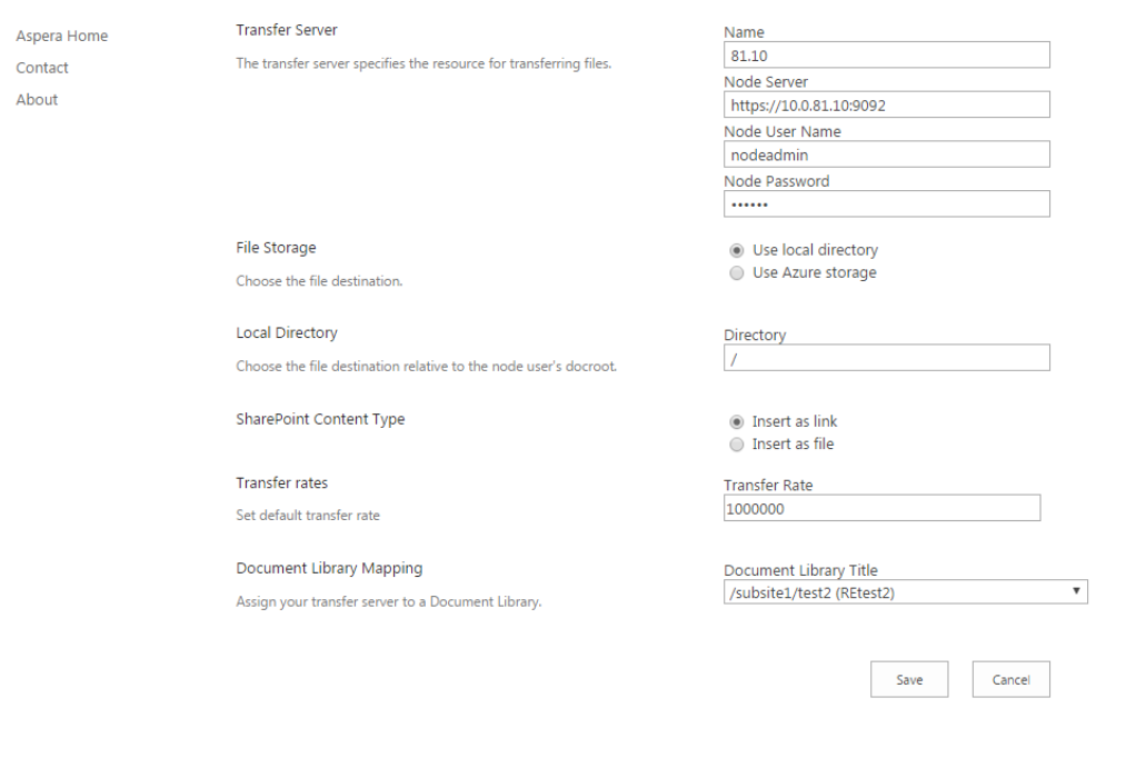 Choose whether to add your content as a small-footprint link to a location on the Aspera transfer server, or as a regular file in the SharePoint content database. |
