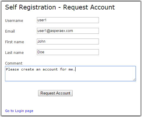 login page. After clicking on this link, complete the following form and