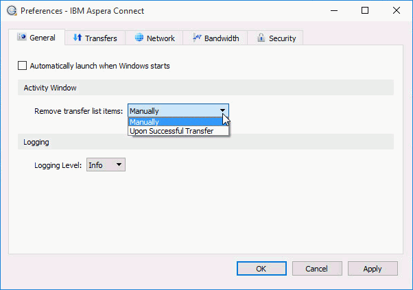 Connect's transfer behavior can be configured under Preferences > Transfers.