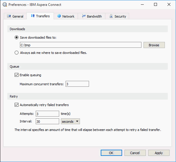- Automatically retry failed transfers – enable or disable.