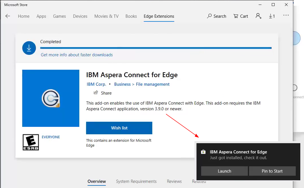 If successful, you'll see the message "IBM Aspera Connect has been added to Chrome".