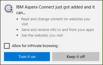 - Click Add to Chrome. The Add "IBM Aspera Connect"? popup appears.