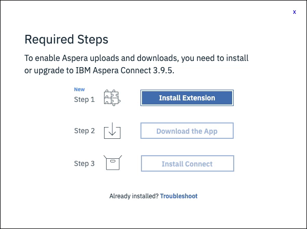 If successful, you'll see the message "IBM Aspera Connect has been added to Chrome".