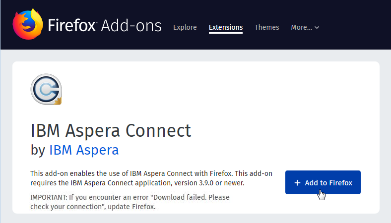 If successful, you'll see the message "IBM Aspera Connect has been added to Firefox".