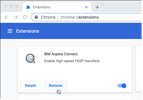 The Extensions tab opens. Look for the panel with the Connect extension and click Remove: