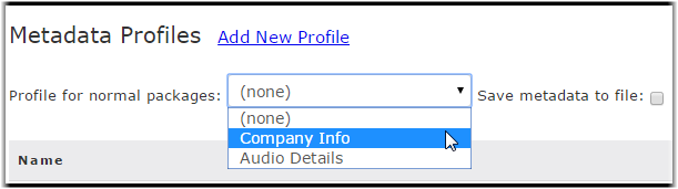 On the Metadata Profiles page, any profiles that you have previously created will be available under the Profile for normal packages drop-down list.
