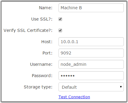| Username | The node API username that was created when Enterprise Server or Connect Server 3.0+ was set up on the node machine. | "node_admin" |